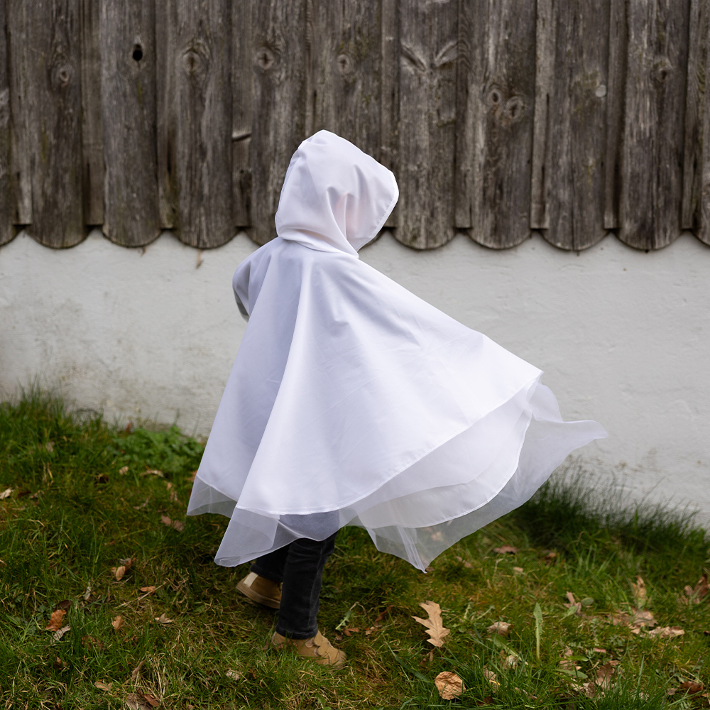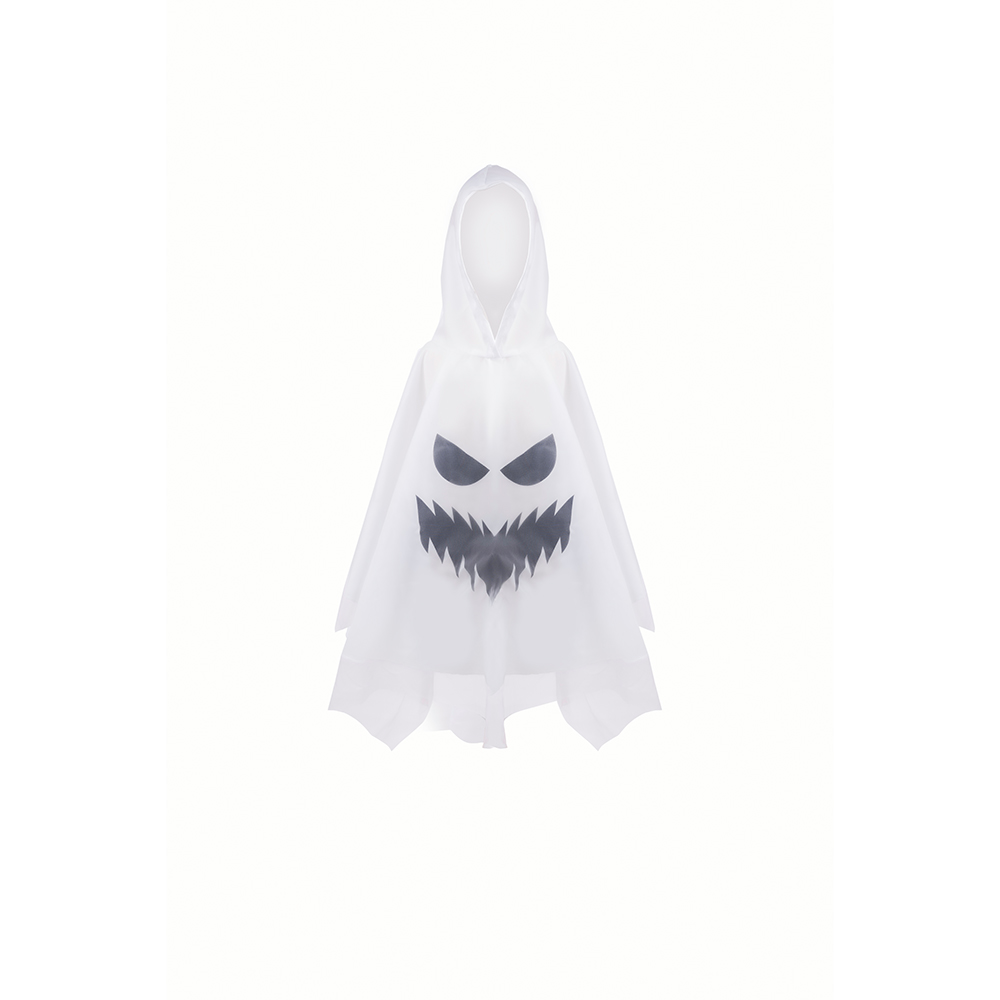 Απλά… τρομακτικά τέλειο! Το νέο Spooky Ghost Poncho της εταιρείας Great Pretenders είναι η ιδανική στολή για μικρά “φαντασματάκια” που θέλουν να συνδυάσουν άνεση και spooky διάθεση. Φτιαγμένο από απαλό λευκό ύφασμα, διαθέτει κλασικό σχέδιο φαντάσματος με μεγάλα μαύρα μάτια και στόμα, καθώς και ευρύχωρη κουκούλα για ακόμη πιο ανατριχιαστικό εφέ. Το ύφασμα πέφτει και κινείται σαν αληθινό φάντασμα, δημιουργώντας μια παιχνιδιάρικη, αιωρούμενη σιλουέτα – ιδανική για το Halloween, αποκριάτικα πάρτι ή spooky μεταμφιέσεις όλο τον χρόνο!